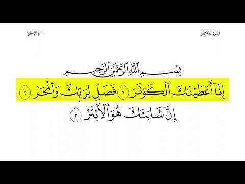 There are 3 ayaat in this ‘makki’ surah. It is narrated from Imam Ja’far as-Sadiq (a.s.) that the person who recites this surah in any of his prayers, will drink from the fountain of Kawthar. The reward for reciting this surah is compared to ten times the number of cattle slaughtered on Eid-ul-Adh’ha every year until the Day of Resurrection.